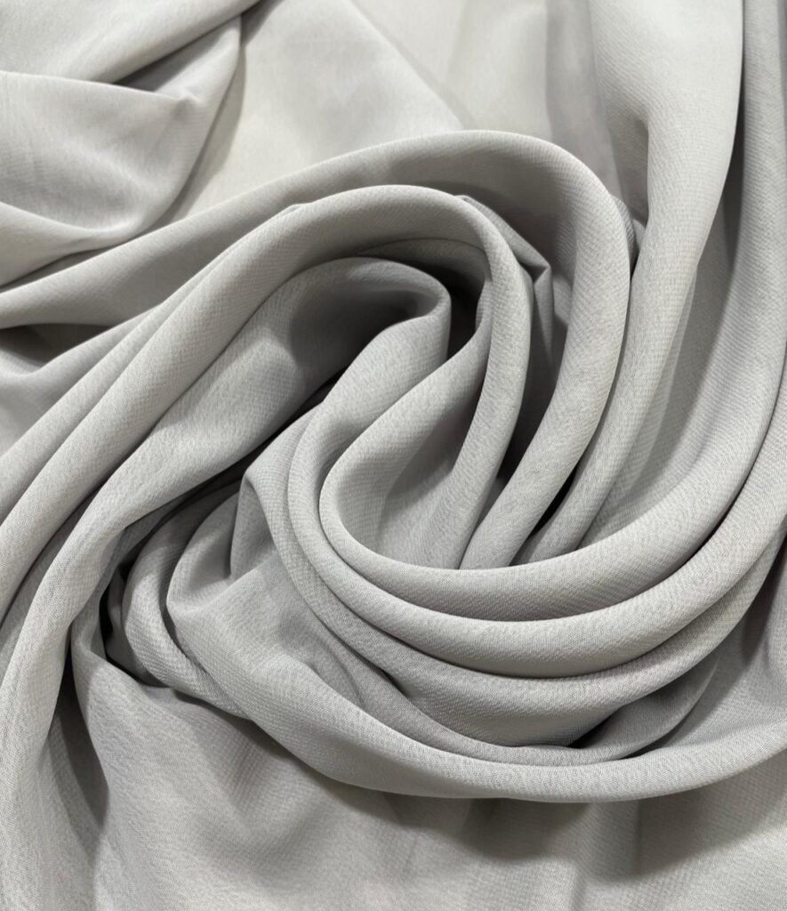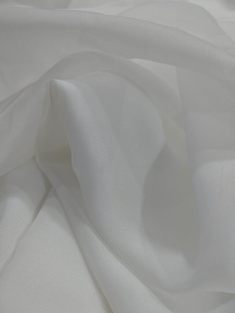 O chiffon é um tecido transparente ou semitransparente, dependendo da gramatura e da cor. Ele possui trama bem fina e leve, permitindo a passagem de luz e criando um efeito delicado e elegante. Tons claros, como branco e off-white, costumam apresentar maior transparência, enquanto cores mais escuras reduzem um pouco esse efeito, mas não o eliminam totalmente.